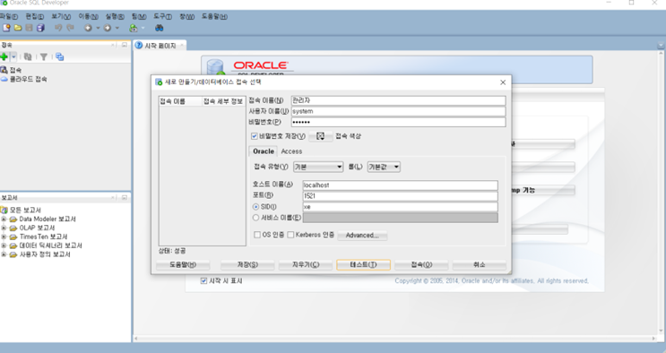 D. 테스트 눌러서 성공 확인하셈 (계정정보 연결 성공) – 성공하면 저장 & 접속