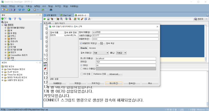 B~D의 절차를 사용자 이름(SCOTT), 비밀번호(TIGER)만 변경해서 실행