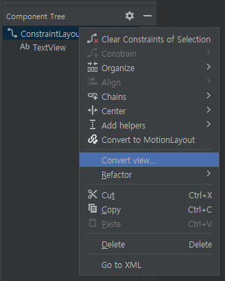 제약조건 기반 모델 연결선을 제약 조건으로 하여 화면을 구성하는 방법 안드로이드 스튜디오에서 자동으로 설정하는 디폴트 레이아웃 |
