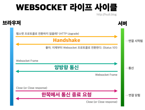 웹 소켓은 전 이중 통신이므로, 연속적인 데이터 전송의 신뢰성을 보장하기 위해 Handshake 과정을 진행한다.