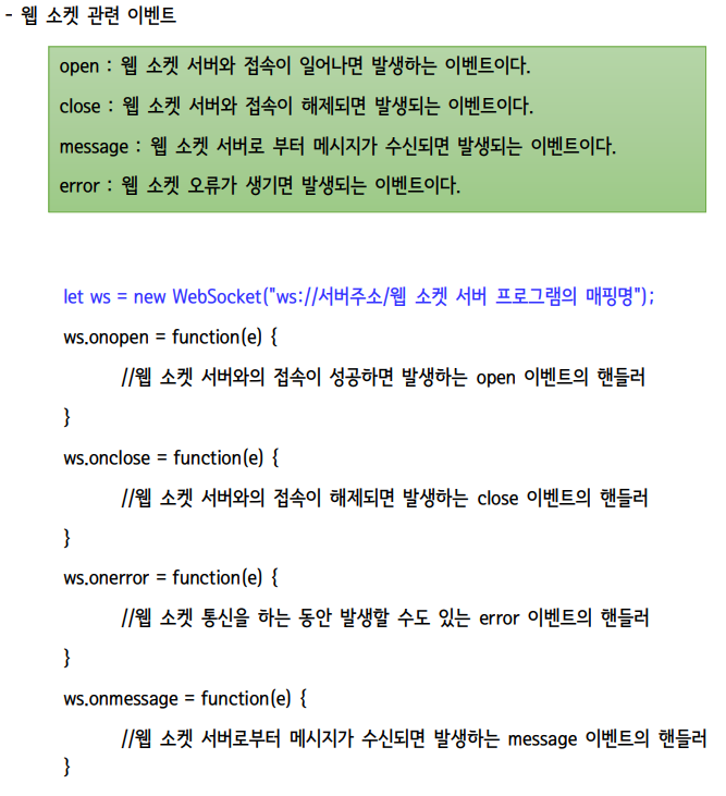 웹 소켓 URL 문자열 : ws://서버주소/웹 소켓 서버 프로그램의 매핑 명