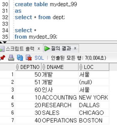 ** Table 복사하여도 제약조건은 복사가 안된다! (Notnull 제외)