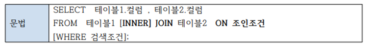 이에따라 FROM절과 Where절의 사용용도가 명확히 구별되고 Oracle join보다 더 범용적으로 사용되는 JOIN 문법이다.