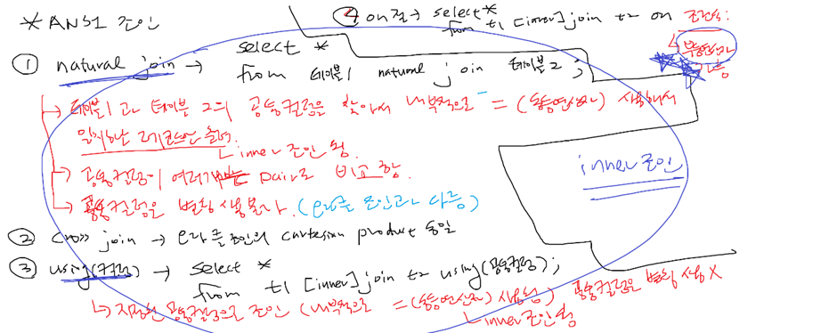 추가적으로, Oracle JOIN은 Where절에 join문법을 작성한 것과 달리 ANSI join은 FROM 절에 JOIN 문법을 작성하게 된다.